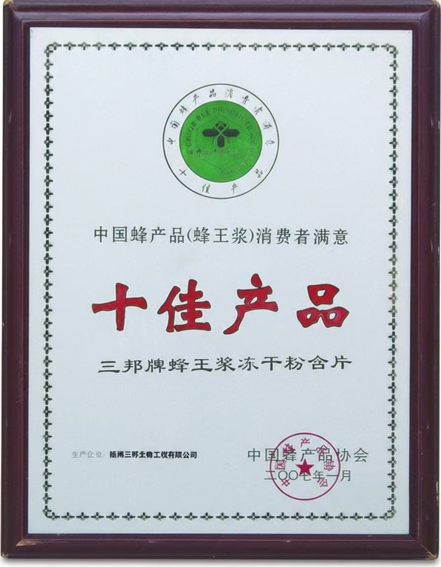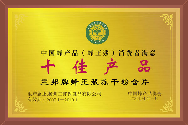 中國(guó)蜂產(chǎn)品消費(fèi)者滿意十佳產(chǎn)品